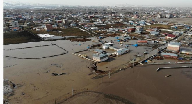 Kars’ta sel felaketi devam ederken, kent merkezinde sular altında kalan evler havadan görüntülendi.