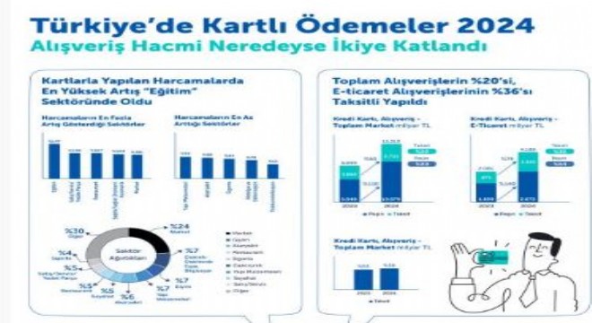 ‘Türkiye’de Kartlı Ödemeler 2024’ araştırmasına göre, harcamaların bir önceki yıla göre en fazla arttığı sektör yüzde 147 ile eğitim oldu. Satış-servis-yedek parça sektörü yüzde 108 ve restoran sektörü de yüzde 107’lik artışla eğitim harcamalarını takip ederken, harcamaların en az büyüdüğü sektör yüzde 61 ile telekomünikasyon oldu.