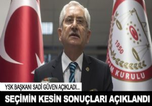 YSK Başkanı Sadi Güven, kesin seçim sonuçlarını açıkladı. Olağan itiraz sürecinin dün saat 17.00 itibariyle sona erdiğini belirten Güven, "Şuan itibariyle biz itirazları değerlendirdik. Sonuçları tespit ettik. Seçimde milyonlarca kişi emek sarf etti. Şahsım ve YSK adına emeği geçen herkese şükranlarımı sunuyorum. Seçim akşamı sandık bazlı sayım, döküm cetveli, sandık sonuç tutanağını, ilçe birleştirme tutanaklarını siyasi partilerimizle paylaştık. Şuan itibariyle tüm vatandaşlarımız kendilerinin oy kullandıkları tüm Türkiye sandıklarını ıslak imzalı olarak görebileceklerdir. Ayrıca yine vatandaşlarımız sandık sonuç tutanaklarının dayanağı olan sayım, döküm cetvellerini görebilecektir. Sandık sonuç tutanaklarının birleştiği ilçe seçim kurulunun tuttuğu birleştirme tutanağını görecektir. İl birleştirme tutanağının da görülme imkanı mevcuttur. Seçim şeffaf bir şekilde ve güvenli bir şekilde yapılmıştır” diye konuştu.