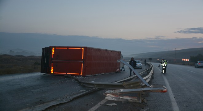 Sivas'ın Yıldızeli ilçesinde kontrolden çıkan eşya yüklü kamyon, devrilerek karşı şeride geçti. Kaza sonrası yol bir süreliğine trafiğine kapandı.