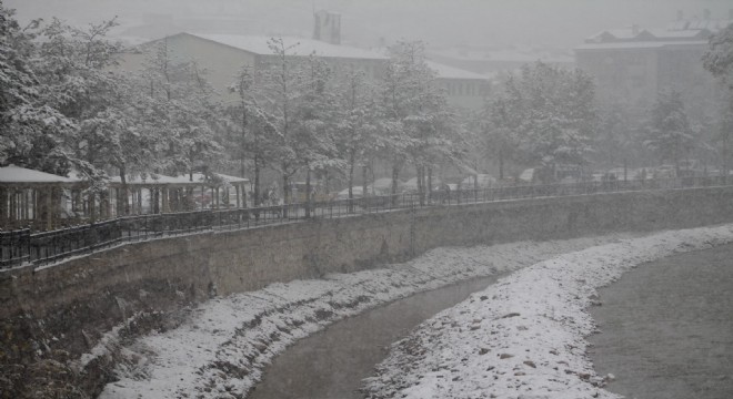 Bayburt’a kent merkezine mevsimin ilk karı düştü.