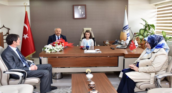 Ertuğrul Gazi İlköğretim Okulu 4. Sınıf Öğrencisi Laloğlu, temsili devir teslim töreninde Başkan Vekili Tavlaşoğlu’ndan kurumun çalışmaları hakkında bilgi aldı. Başkan Vekili Tavlaşoğlu Başkan Laloğlu’na yeni görevinde başarılar diledi. Erzurum Büyükşehir Belediye Başkanı Azranur Laloğlu, şehre yaptığı hizmetlerden ötürü Başkan Mehmet Sekmen’e teşekkür ederek, “Erzurum için yaptığı çalışmalardan ötürü Başkanımız Mehmet Sekmen’e ve Erzurum Büyükşehir Belediyesi’nin tüm çalışanlarına çok teşekkür ediyorum” dedi. Başkan Laloğlu, “Türkiye Cumhuriyeti’nin kurucusu Gazi Mustafa Kemal Atatürk’ün bizlere armağan ettiği bugünde tüm Dünya çocuklarının 23 Nisan Ulusal Egemenlik ve Çocuk Bayramı’nı kutluyorum. Palandöken Kayak Merkezi’ne yapılan önemli yatırımlar, Erzurum’un tarihi ve kültürel görünümünü ortaya çıkaran kentsel dönüşüm projeleri ve Erzurumlu çocukların kayakla tanıştırılmasından ötürü Başkanımız Mehmet Sekmen’e kentteki tüm çocuklar adına da teşekkür ediyorum” diye konuştu. Hayata geçireceği projeler hakkında bilgi veren Laloğlu, kış mevsiminde esnaf için kapalı pazar alanlarının oluşturulması, oyun alanlarının kurulması, çöp kutularının yanına geri dönüşüm kutularının yapılması, hatıra ormanlarının artırılması gibi önemli tespitlerde bulundu. 23 Nisan Ulusal Egemenlik ve Çocuk Bayramı dolayısıyla düzenlenen temsili devir teslim töreni, hediye takdimi ve hatıra fotoğrafının çekimiyle sona erdi.