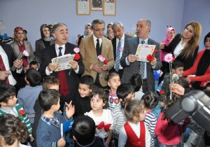 Öğrencilerle tek tek ilgilenen Başkan Yardımcıları miniklere temsili karnelerini verirken sorduğu soruların cevabını alınca öğrencileri tebrik ederek başarılar dilediler.