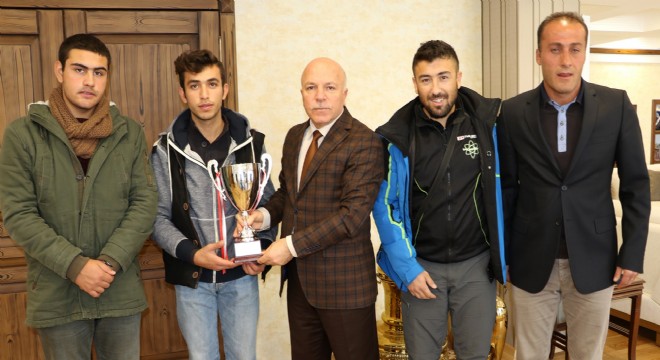 Erzurum Gençlik Spor Kulübü Hokey Takımı, yükselme kupasını Erzurum Büyükşehir Belediye Başkanı Mehmet Sekmen’e armağan etti.