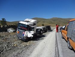 Erzurum-Sivas karayolunda LNG yüklü tanker devrildi. Kazada facianın eşiğinden dönüldü.