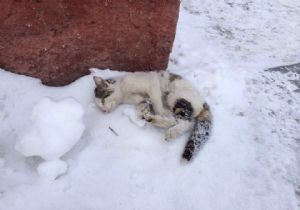 Erzurum’da hüküm süren Sibirya soğukları dışarıda kalan başıboş hayvanların yaşantısını da olumsuz yönde etkilerken bir kedi donarak telef oldu.