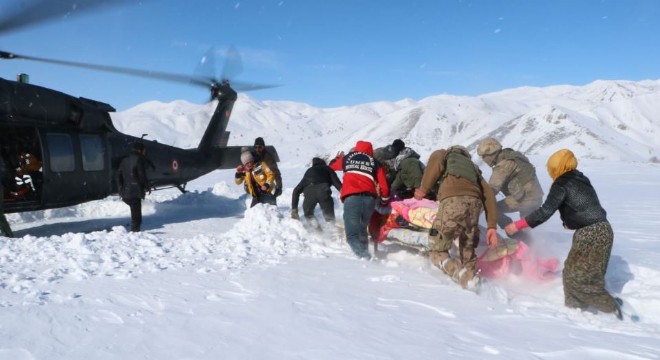 Çat ilçesinde yolu kapanan köyde bulunan hasta askeri helikopterle kurtarıldı. Hasta, hastaneye kaldırılarak tedavi altına alındı.