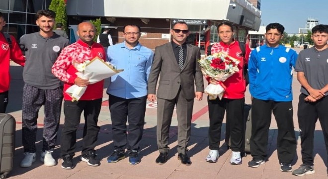 Norveç'te düzenlenen Avrupa 23 Yaş Altı Atletizm Şampiyonası'nda altın madalya kazanan TOHM Sporcusu Dilek Koçak ile şampiyonada ülkemizi temsil eden Ömer Faruk Bozdağ ve antrenör Fesih Doğan, havalimanında çiçeklerle karşıladı.