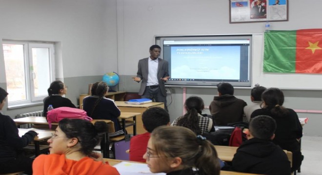 Atatürk Üniversitesi’nde okuyan Kamerun, Burkina Faso ve Senegal'den gelen öğrenciler ülkelerini ortaokul öğrencilerine tanıttılar.