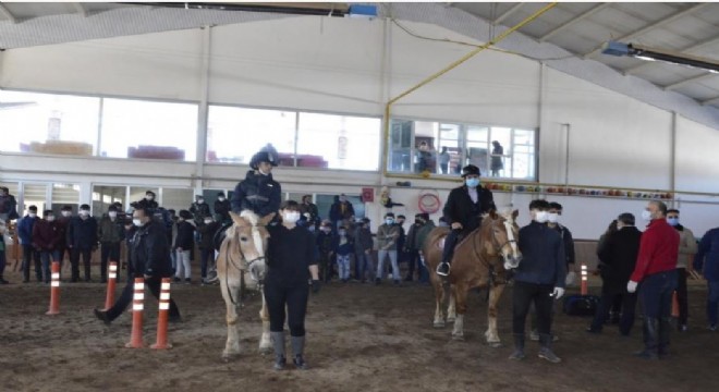 Çocuklara ata binmeleri için kask, mont ve ayakkabı hediye edildi. Hediyelerini alan öğrenciler tesislerin içine girerek burada eğitmenler nezaretinde ata binmeye çalıştılar. Ata binen öğrenciler tesis içerisinde tur attılar.