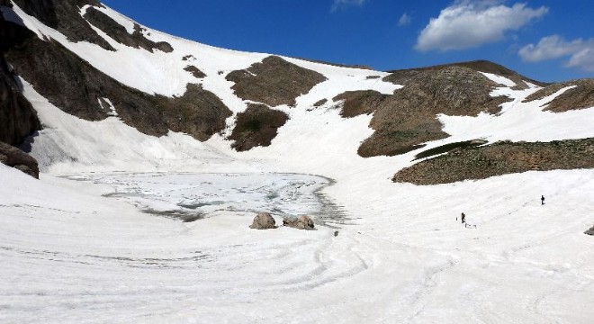 Erzincan-Tunceli arasındaki Munzur Dağları’ndaki Şahintaşı Tepe’nin kuzey yamacında 2015 yılında akademisyenler tarafından uydu üzerinden tespiti yapılarak keşfedilen buzul, yaklaşık 7 saatlik tırmanışın ardından İhlas Haber Ajansı tarafından yerinde görüntülendi.