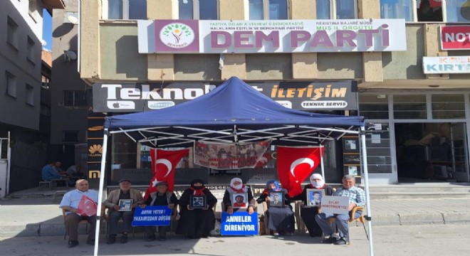 Muş’ta çocukları terör örgütü PKK tarafından kaçırılan aileler, DEM Parti İl Başkanlığı binası önündeki eylemlerine kararlılıkla devam ediyor.