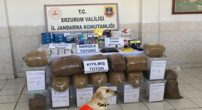 Oltu Cumhuriyet Başsavcılığı koordinesinde Erzurum İl Jandarma Komutanlığı KOM Şube Müdürlüğü ve Narman İlçe Jandarma Komutanlığı unsurlarınca kaçakçılıkla mücadele kapsamında Narman ilçesinde ikamet eden bir şahsın kaçak tütün ve sigara sattığı belirlendi. Oltu Cumhuriyet Başsavcılığından alınan arama kararına istinaden şüpheli şahsın evinde ve iş yerinde yapılan aramada 93 kilogram kıyılmış sarmalık tütün, 7 bin 520 adet doldurulmuş makaron, 110 karton içi boş makaron, 96 paket nargile tütünü, 6 adet sigara sarma makinesi, 2 adet sigara doldurma aparatı ele geçirildi. Gözaltına alınan şüpheli adli makamlara sevk edildi.