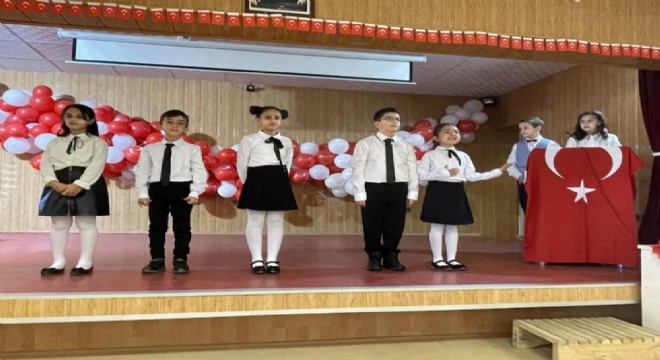 29 Ekim Cumhuriyet Bayramı'na özel kırmızı-beyaz kıyafetleri giyerek, rengarenk bir görüntü oluşturan öğrencileri, Türk bayrakları ve Atatürk posterleriyle etkinlik alanını süsledi.