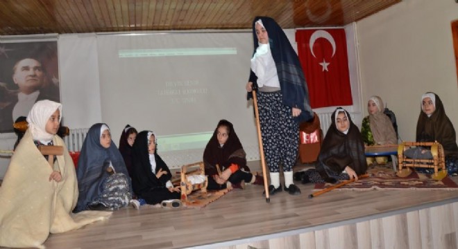 Programda daha sonra 93 Harbi’nin kadın kahramanı Nene Hatun’u canlandıran öğrenciler sahne aldı. 3/C Sınıfı öğrencisi Dilvin Senir’in Nene Hatun’un hayatını anlattığı sinevizyon sunumunun ardından öğrenciler, ‘Nene Hatun Ecdadımdır’ şiirini okudular.