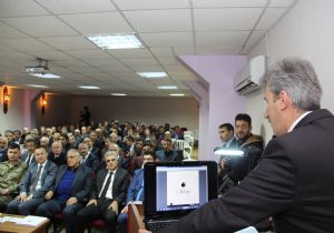 Oltu Kaymakamlığı Toplum Merkezi’nde yapılan toplantının açılış konuşmasını yapan Proje Koordinatörü Temel Vural, projede gelinen nokta hakkında bilgilendirdi.