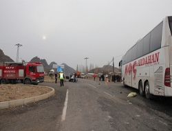 Otobüs içerisinde bulunan yolcular kazayı yara almadan atlatırken, kazayla ilgili tahkikat başlatıldı.