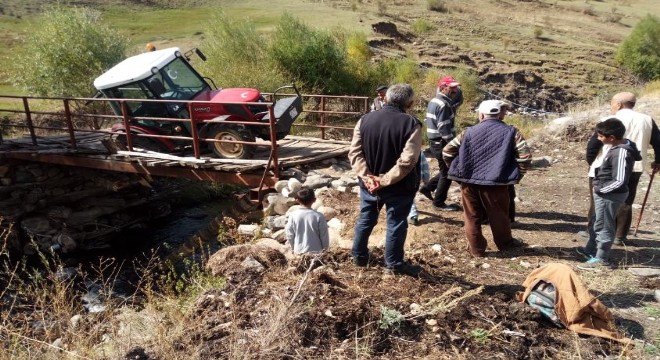 Mahalle Muhtarı Abubekir Gültekin, “Oğlum Mustafa, hayvanları bulmak için traktörle araziye gitti. Gelirken köprüde motor köprünün tahtaları kırılmış, traktör mahsur kaldı. Vinçle kurtardık şükürler kazada kimseye bir şey olmadı” dedi.