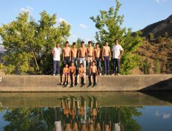 Oltu 25 Martspor Güreş Kulübü sporcuları antrenmanlarına yüzmeyi de kattı.