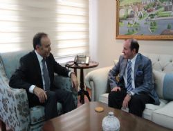 ERZURUM-Erzurum Büyükşehir Belediye Başkanı Av. Ahmet Küçükler, Erzurum’a yeni atanan Vali Dr. Ahmet Altıparmak’a `hoşgeldin` ziyaretinde bulundu. Başkan Küçükler, ziyarette, Vali Altıparmak`a, yeni görevinde başarılar diledi ve Büyükşehir Belediyesi`nin yaptığı çalışmalar ile yürüttüğü projeler hakkında kısa bilgi verdi.Ziyaretten duyduğu memnuniyeti dile getiren Vali Altıparmak ise, Erzurum`un, Türk tarihinde önemli yere sahip büyük bir ilimiz olduğunu anımsattı. Altıparmak ildeki resmi ve sivil kuruluşlarla el ele, omuz omza vererek Erzurum`u daha ileri noktalara taşımak için birlikte gayret göstereceklerini, söyledi.