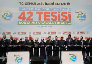 Konya’ya ziyaretinin bir sebebinin de vatandaşları hizmetlerle buluşturmak olduğunu belirten Davutoğlu, baraj, sulama, taşkın koruma, ağaçlandırma, ormancılık, milli park ve meteoroloji hizmetlerinden oluşan ve 1 milyar 171 milyon liralık 42 tesisin 19’unun açılışını yapacaklarını, 23’ünün de temelini atacaklarını dile getirdi.