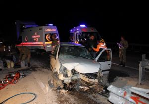 Erzincan da yol çalışması nedeniyle daralan yolda işaretlemelerin farkına varmayan sürücü bariyerlere çarptı. Otomobili bariyerlere saplandığı kazada 2 kişi ağır yaralandı.