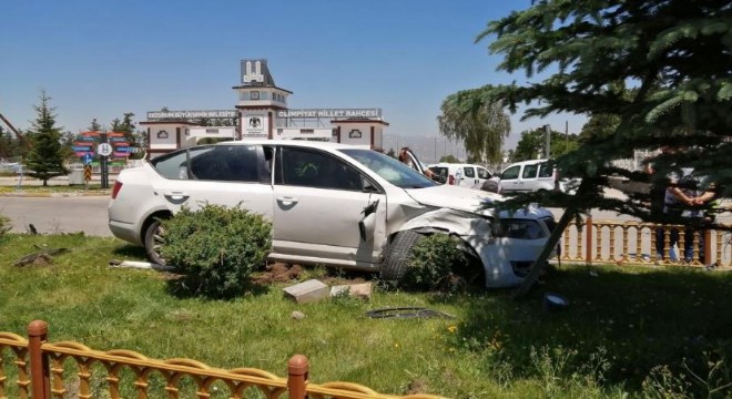 Erzurum’da aynı şeritte sedyeden iti otomobilin çarpışması sonucu direksiyon hakimiyetini kaybeden otomobil orta refüje çıkarak ağaca çarparak durabildi.