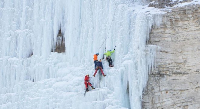 Tırmanışların yapıldığı bölgelerde Jandarma ekipleri geniş güvenlik önlemi alırken, Ulusal Medikal Kurtarma Ekibi (UMKE) hazır bekledi. Zorlu buz tırmanışı dün sona erdi.