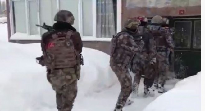Bir metreyi bulan karda Özel Harekat Polisi destekli düzenlenen operasyonda gözaltına alınan şüphelilerin emniyetteki işlemlerinin devam ettiği bildirildi.