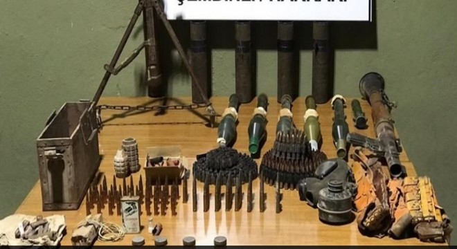 "1 adet 12.7 mm doçka uçaksavar silahı, 1 adet RPG-7 roketatar, 1 adet 60 mm havan, 1 adet EYP basma düzeneği, 2 adet el bombası, 2 adet anti personel mayını, 4 adet 60 mm havan mühimmatı, 5 adet RPG-7 roketatar mühimmatı, 243 adet 7.62 mm PKMS makinalı tüfek mühimmatı, 40 adet Dragunov keskin nişancı tüfeği mühimmatı, 82 adet çelik çekirdekli zırh delici mühimmat, 10 adet av tüfeği fişeği."