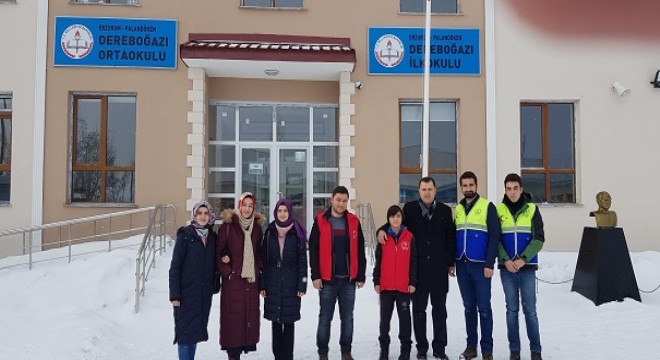 Erzurum Gençlik Hizmetleri Spor İl Müdürlüğü’ne bağlı Palandöken Gençlik Merkezi ‘Tekno Dönüşüm’ projesi kapsamında Dereboğazı Ortaokulu’nda dereceye giren ilk 20 öğrenciye bilgisayar hediye ederek, öğrencilerin karne sevincine ortak oldu.