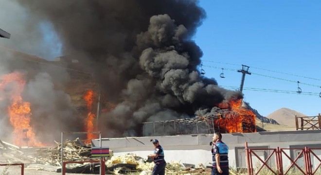 Palandöken Kayak Merkezinde açık alandan kafe olarak kullanılan alanda çıkan yangın paniğe neden oldu.