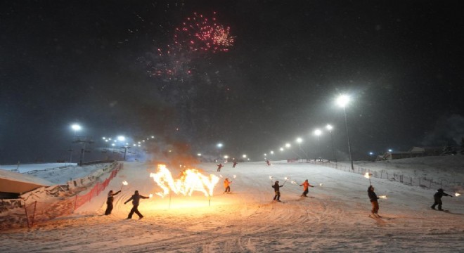Kış turizminin gözde mekanlarından Erzurum Palandöken'de yılbaşı tatilini geçiren yerli ve yabancı misafirler, yeni yıla meşaleli kayak gösterisiyle girdi.
