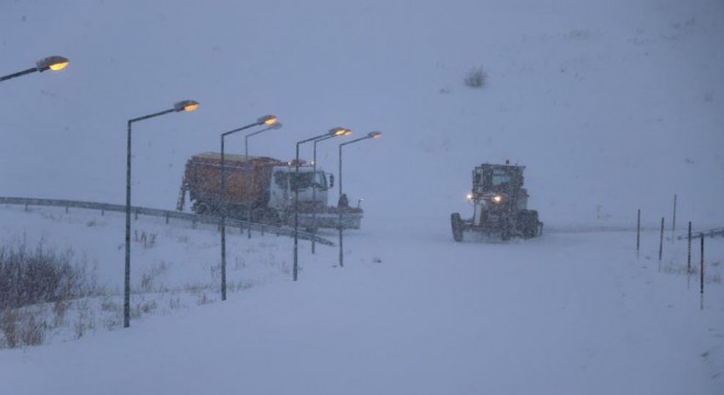 Karayolları ekipleri kar küreme ve tuzlama çalışması yürütürken tipiden oluşan sürgün sürücülere zor anlar yaşattı.