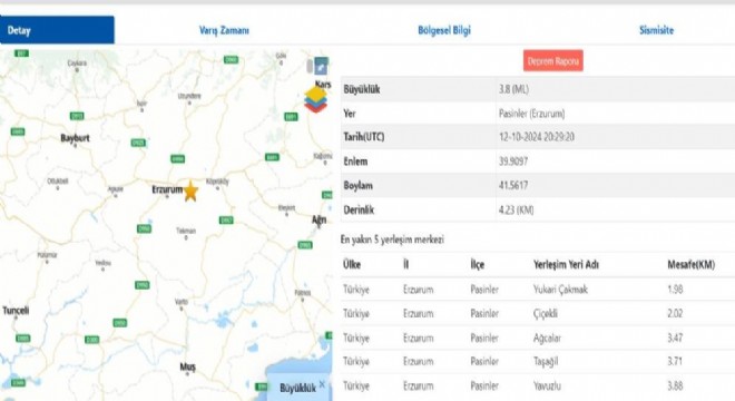 AFAD, Erzurum’un Pasinler ilçesinde Cumartesi günü saat 23:29’da 3,8 büyüklüğünde, yerin 4,23 km derinliğinde bir deprem meydana geldiğini paylaştı.