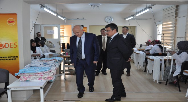 Erzurum’un Pasinler ilçesinde Pasinler Kaymakamlığı Sosyal Yardımlaşma ve Dayanışma Vakfı Başkanlığınca 2015 yılı SODES programları kapsamında hazırlanan ve Kalkınma Bakanlığı’nca onay alan ve çalışmaları başlatılan Kadınım bende varım, çalışır kazanırım projesi kapsamında Pasinler’de kurulan konfeksiyon atölyesini gezen Erzurum Vali vekili Palandöken Kaymakamı Gürbüz Karakuş , Milli Eğitim ve Sodes’den sorumlu Vali Yardımcısı ve Yakutiye Kaymakamı Dr. Ahmet Naci Helvacı, Aziziye Kaymakamı Zafer Öz, Narman Kaymakamı Murat Eren, Oltu Kaymakamı Mehmet Gökhan Zengin’e Pasinler Kaymakamı Ali Ada tarından atölye çalışmaları hakkında bilgi verildi.