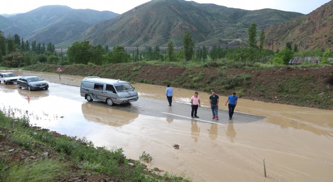 Erzurum'da etkili olan yağmur, araç ve yaya trafiğini olumsuz etkiledi. Oltu-Narman yolu sel nedeniyle 1,5 saat trafiğe kapandı.
