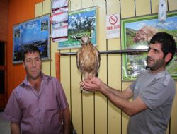 Oltu ilçesinde kasaplık yapan Murat Zengin, iki gün önce Oltu-Göle karayolu üzerinde bulunan ağırına giderken bulduğu uçamayan yavru şahini alarak, tedavi ettirdikten sonra işyerinde bakmaya başladı.