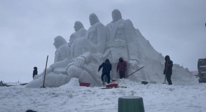 Sarıkamış ta kardan heykellerin yapımı tamamlandı