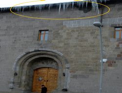 Erzurum’da etkili olan kar yağışının yanı sıra hava sıcaklıklarının eksi değerlere düşmesi sonucunda çatılarda oluşan kar ve buz kütleleri vatandaşları korkutuyor. Vatandaşlar çatılarda oluşan buz sarkıtları nedeniyle cadde sokaklarda rahatça yürüyemediklerini belirterek, buna yöneticilerinin buz sarkıtları konusunda gerekli tedbirleri alması gerektiğini dile getirdiler.