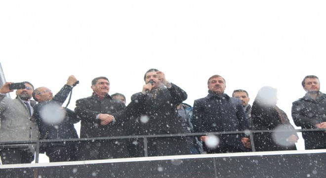 Savcı Sayan ve beraberindekiler AK Parti İl Başkanlığı önünde kendilerini bekleyen yüzlerce vatandaşla bir araya geldi. Otobüsün üzerinde yapılan selamlama konuşmalarının ardından konuşan AK Parti Ağrı Belediye Başkan adayı Savcı Sayan, yoğun kar yağışında kendisini bekleyenlere teşekkür edip Cumhurbaşkanı Recep Tayyip Erdoğan’ın selamını vatandaşlara ileterek konuşmasına başladı.