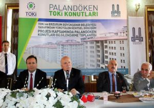 Erzurum Büyükşehir Belediye Başkanı Mehmet Sekmen, şehrin dört bir tarafından yapılan inşaatlarla il genelinde büyük bir kentsel dönüşüm atağı başlattıklarını söyledi. Başkan Sekmen, Tarihi Müceldili Konağı’nda düzenlenen basın toplantısında, TOKİ ve Erzurum Büyükşehir Belediyesi tarafından yürütülen Palandöken Konutları ile ilgili kamuoyunu bilgilendirdi. Toplu Konut İdaresi (TOKİ) Başkanlığı Finansman Daire Başkanı Ayhan Karaca, Büyükşehir Belediyesi Genel Sekreteri Ali Rıza Kiremitci, ESKİ Genel Müdürü Mevlüt Vural, Büyükşehir Belediyesi Genel Sekreter Yardımcıları Ünsal Kıraç, Selami Keskin, Cevat Öksüz ve Zafer Aynalı’nın da katıldığı toplantıda Başkan Sekmen, kentte büyük bir konut açığının bulunduğunu ifade etti. Sekmen, şunları kaydetti: “TOKİ ve Büyükşehir Belediyemiz tarafından Eski Mal Meydanı’nda 579 konutun yapımı devam ediyor. Son zamanlarda gelişen ve değişen bir Erzurum’u görmekteyiz. Alt ve üstyapı faaliyetleriyle Türkiye genelinde büyük bir hamle başlatmış bulunuyoruz. Şehrin dört bir yanını şantiye alanına çevirdik. Bu kadim şehre daha güzel bir görünüm kazandıracağız. Gerek altyapı hizmetleri, gerek kentsel dönüşüm gerekse de diğer ihtiyaçları karşılamak üzere yoğun bir gayret sarf ediyoruz. Bizim seçim dönemimizde şöyle bir vaadimiz vardı; ‘5 bin civarında konut yapılarak topluma arz edilmesi’ Bunun gereği olarak şuanda TOKİ tarafından şehrimizde 2 bin konut yapılıyor. Bunlardan Mal Meydanı’nda 1200 civarında, 600 konut da Ilıca’da, 150’de işyeri olmak üzere yaklaşık 2 bin konut yapılıyor. İnşallah bu devam edecek.”