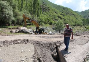 Erzurum’un Oltu İlçesinde sel sularının tahrip ettiği yol ve köprüler yeniden yapılıyor.