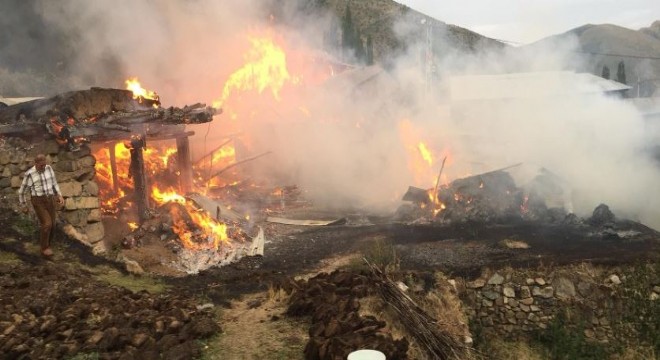Tortum ilçesinde çıkan yangın 8 saat sonra kontrol altına alınırken, yangında 3 ev, 9 ahır kullanılamaz hale geldi.