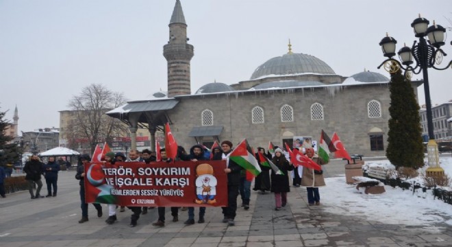 İsrail'in Gazze'ye yönelik saldırılarını protesto etmek için Erzurum'da görev yapan hekimler ve sağlık görevlileri sesiz yürüyüşlerini 12. haftasında bir araya geldiler.