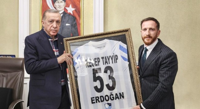 Erzurumspor’un genel durumu ve futbolun içerisinde bulunduğu konularla ilgili bilgilendirmelerde bulunan Dal, görüşmenin ardından Erzurum ziyareti anısına Cumhurbaşkanı Erdoğan’a Erzurumspor’un formasını takdim etti.