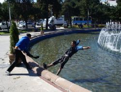 ERZURUM (İHA) - Erzurum Havuzbaşı’nda birbiriyle şakalaşan lise öğrencilerinin şakası ıslak bitti.