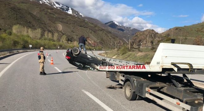 Erzincan’da takla atan otomobildeki sağlık çalışanı yaralandı.