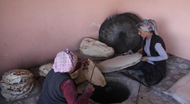 Doğu Anadolu'da Ramazan sofralarının vazgeçilmez yöresel lezzeti tandır ekmeği yakılan tandırlarda kadın ustalar tarafından pişiriliyor.