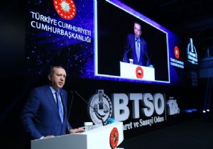 ‘Hizmetleri ve Bursa’ya kazandırdığı katma değerlerle, Türkiye çapında gerçekten müstesna bir konumda’ diye nitelediği Bursa Ticaret ve Sanayi Odası’nın, “Bursa büyürse Türkiye büyür” sözüne atıfta bulunan Cumhurbaşkanı Erdoğan, devamında şunları söyledi: “Esasen bu slogan 81 vilayetimizin her biri için ayrı ayrı geçerlidir. Plaka sırasına göre ilk ve son şehirlerimizle ifade edersek, Adana büyüyecek ki Türkiye büyüsün, Düzce büyüyecek ki Türkiye büyüsün… Tabii Türkiye’nin büyümesinden, güçlenmesinden, kendi vatandaşlarıyla birlikte kardeşleri için de bir umut kaynağı, ilham kaynağı haline gelmesinden ne yazık ki rahatsız olanlar var. Bunun için içeride ve dışarıda önümüze her türlü engel çıkartılıyor, her türlü provokasyona başvuruluyor. Suriye krizi, bir yönüyle bölgenin kendi dinamiklerinin ürünüyse, bir yönüyle de Türkiye’nin önünü kesme projesidir. Irak’ta yaşanan hadiselerin gerisindeki saiklerden biri de, aynı şekilde Türkiye’nin güçlenmesinden duyulan rahatsızlıktır.”